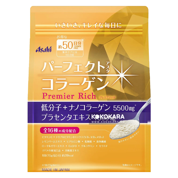 【原材料名】:豬膠原蛋白肽、難消化性葡萄糖、月桃葉提取物粉末、葡萄糖、胎盤提取物粉末、殺菌乳酸菌粉末、含有神經酰胺的鳳梨提取物粉末、植物油脂、蜂王漿提取物粉末、輔酶Q10、混合草本提取物粉末(葡萄糖、魚腥草、野山楂、羅馬洋甘菊、葡萄葉)、酵素處理燕窩/V.C、透明質酸、香料、葡萄糖胺(來自蝦和蟹)、增稠劑(普魯蘭)、甜味劑(阿斯巴甜、三氯蔗糖)