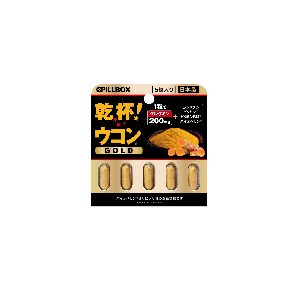 PILLBOX 乾杯 薑黃GOLD解酒丸(5粒裝) 是一款來自日本的保健食品,專為經常應酬、聚會或飲酒後容易感到不適的人士設計。