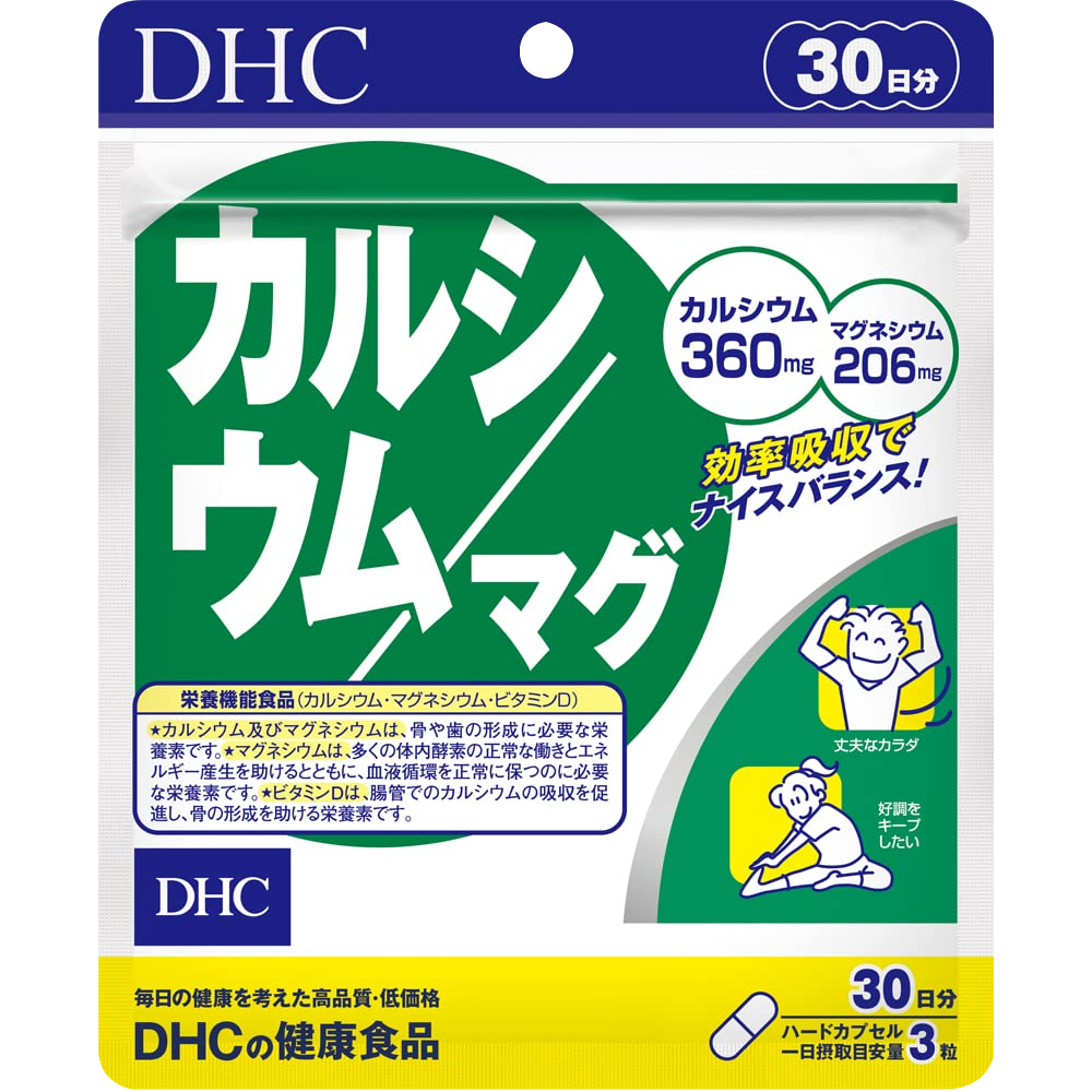 DHC 鎂鈣營養機能食品(30日份),採用日本高品質天然白雲石(碳酸鈣碳酸鎂)為原料,並搭配維生素D3與酪蛋白磷酸肽(CPP),協助鈣質吸收、維護骨骼及牙齒健康,同時支持肌肉與神經功能。