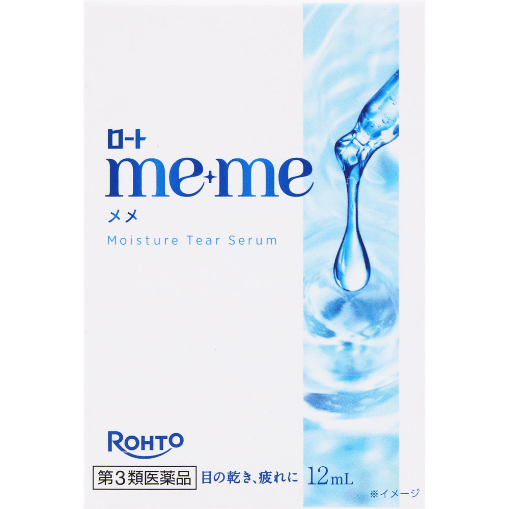 樂敦 Meme(me+me)保濕淚液精華是第3類醫藥品眼藥水,採高黏度配方,以形成類似淚膜的保濕保護層,含有角膜修護成分硫酸軟骨素鈉與多種礦物質,可緩解乾眼、疲勞、視線模糊,適合裸眼、隱形眼鏡、彩片佩戴者使用